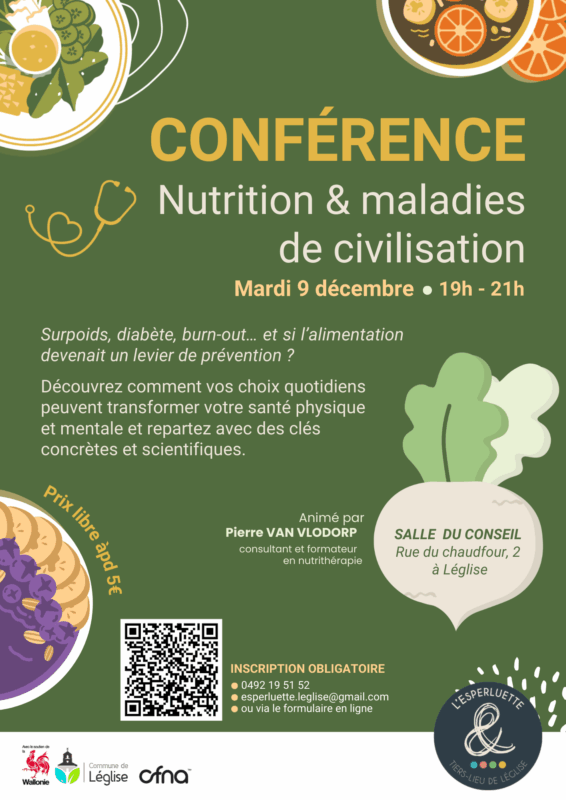 Pierre Van Vlodorp anime des conférences afin de faire la promotion de la santé par la nutrition.